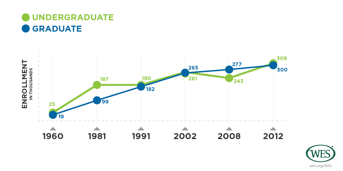 For the first time since 2001-02, there are fewer international graduate students than undergraduate students enrolled in U.S. institutions of higher education (IIE 2012).