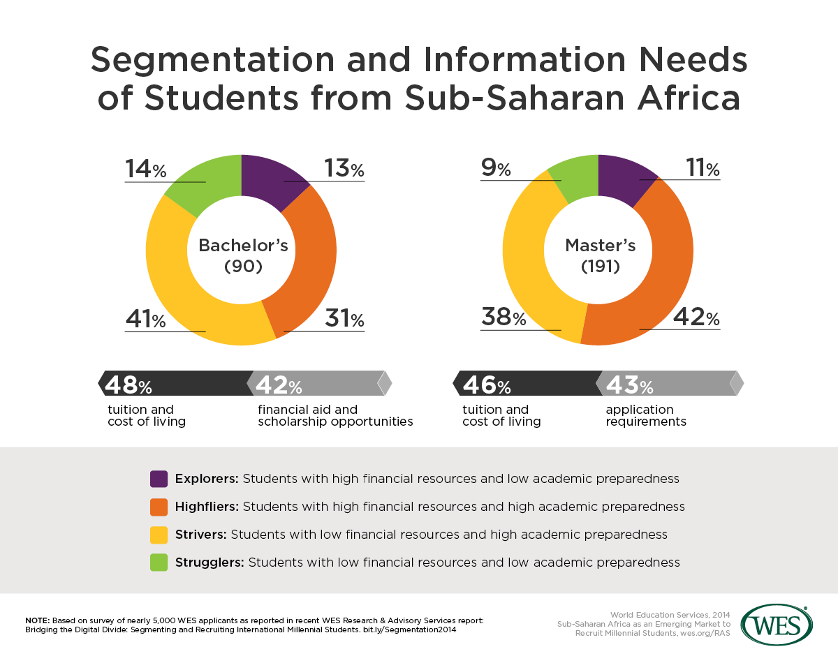 On the other hand, Sub-Saharan Africa remains one of the most inequitable regions in the world in terms of wealth distribution, which explains why Strivers (students with low financial resources and high academic preparedness) make up a high percentage of all students and suggests that many who are interested in studying abroad are likely to face challenges in affording the associated costs.
