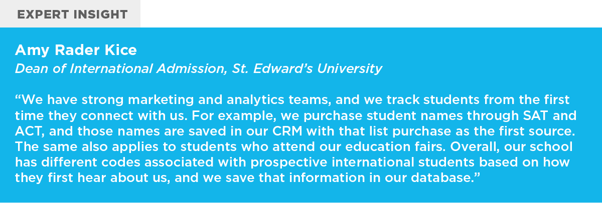 The increasing use of customer relationship management (CRM) tools in international enrollment management shows the promise of this approach. Our survey found that more than half of responding institutions are using a CRM or information management systems to engage potential students and keep track of communications.
