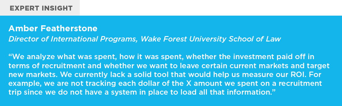 Our research showed that most HEIs understand the value of ROI analysis – even when they lack the capability to do it effectively. According to our interviews, institutions view ROI as an important indicator, helping them to assess not only the value of monetary outlays, but also of the intangible resources such as time, effort and man-hours that go into each recruitment activity.