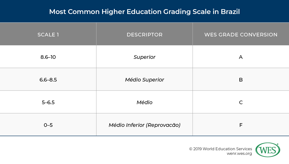 There is no nationally standardized credit system, but several institutions define one credit as 15 contact hours per semester, while some institutions may define one credit as 20 contact hours per week There is no uniform higher education grading scale either, but the most common grading scale is 0-10 with 5 as the minimum passing grade. Some institutions use 6, while some at the graduate level use 8 as the minimum passing grade. A-D grading scales may also be used by some HEIs. Most transcripts list a key to the specific grading scale used.